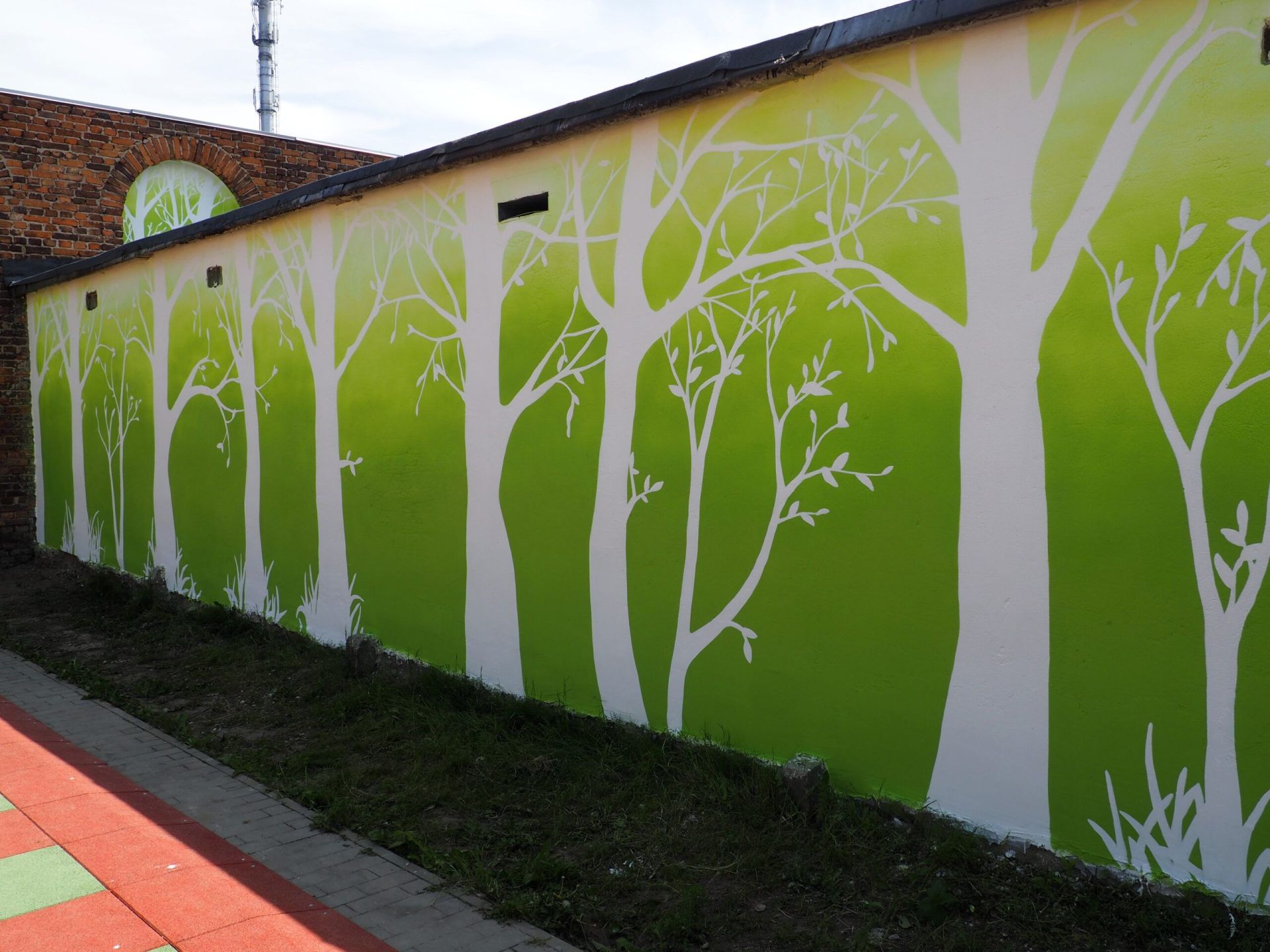 Na wiosnę 2023 roku na murze wzdłuż placu zabaw powstał kolorowy mural. Składa się z sześciu części. W podobnym tonie udekorowane zostały garaże.