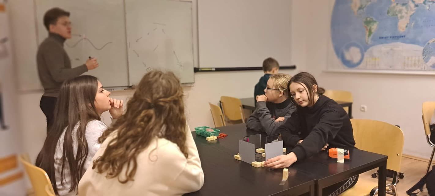 W ramach projektu uczniowie “katolika” wyjechali na wycieczkę do Obserwatorium Instytutu Astronomii UMK w podtoruńskich Piwnicach. W tajniki obserwacji astronomicznych i pracy astronomów wprowadził ich prof. Andrzej Strobel. Młodzież zwiedziła z nim urokliwy o każdej porze roku park, będący odwzorowaniem modelu Układu Słonecznego. Miała też jedyną w swoim rodzaju okazję, żeby zajrzeć pod kopuły dwóch najważniejszych teleskopów optycznych – astrografu Drapera i teleskopu Schmidta-Cassagraina. Wrażenie na uczniach zrobił imponujący – 32-metrowy radioteleskop RT4. O historii i ewolucji Układu Słonecznego opowiedział im dr Marcin Gawroński. A pod okiem Dawida Jankowskiego i Agnieszki Górskiej-Pukownik podczas warsztatów badali prawa optyki geometrycznej. Na pamiątkę stworzyli okulary działające jak spektroskop. W ramach projektu szkoła wzbogaciła się w profesjonalny sprzęt, z którego regularnie korzystają uczniowie.